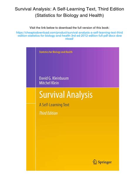 Read Survival Analysis A Self-Learning Text Doc online is a convenient and frugal way to read Survival Analysis A Self-Learning Text you love right from the comfort of your own home. Yes, there sites where you can get Doc "for free" but the ones listed below are clean from viruses and completely legal to use.